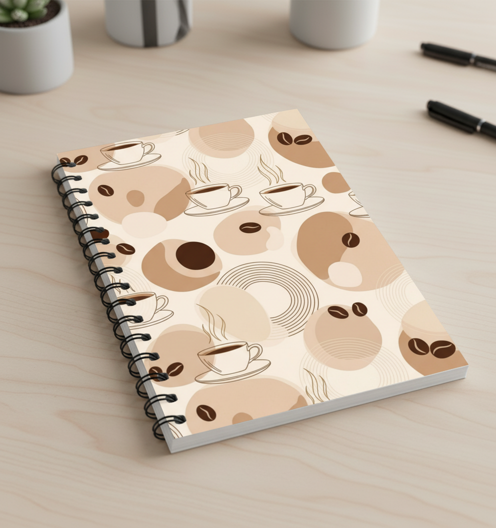 Warm, modern und voller Coffee-Vibes: Unser Cozy Coffee Notizbuch kombiniert abstrakte Kaffeetassen und Bohnen mit einem harmonischen Beige-Look. Das abwischbare, wiederverwendbare A5-Notizbuch Kaffee ist perfekt für alle Kaffeeliebhaber und bringt ein Stück Café-Atmosphäre direkt auf Deinen Schreibtisch.